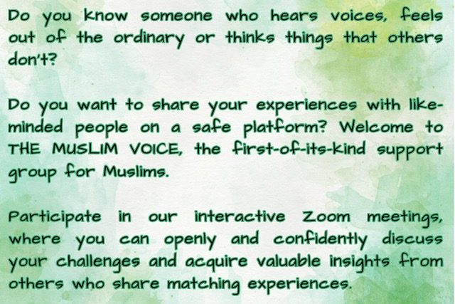 Muhammad Khan and Safia Aslam are the co-founders of this pioneering initiative. Their ethos is to treat people with respect and dignity regardless of their beliefs and ideas. They cater for both males and females and have separate meetings. It is the first of its kind peer support group for Muslims. However, anyone is welcome to join and contribute. Zoom meetings are held every Wednesday.